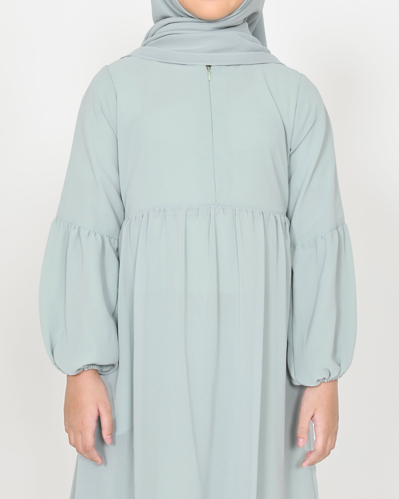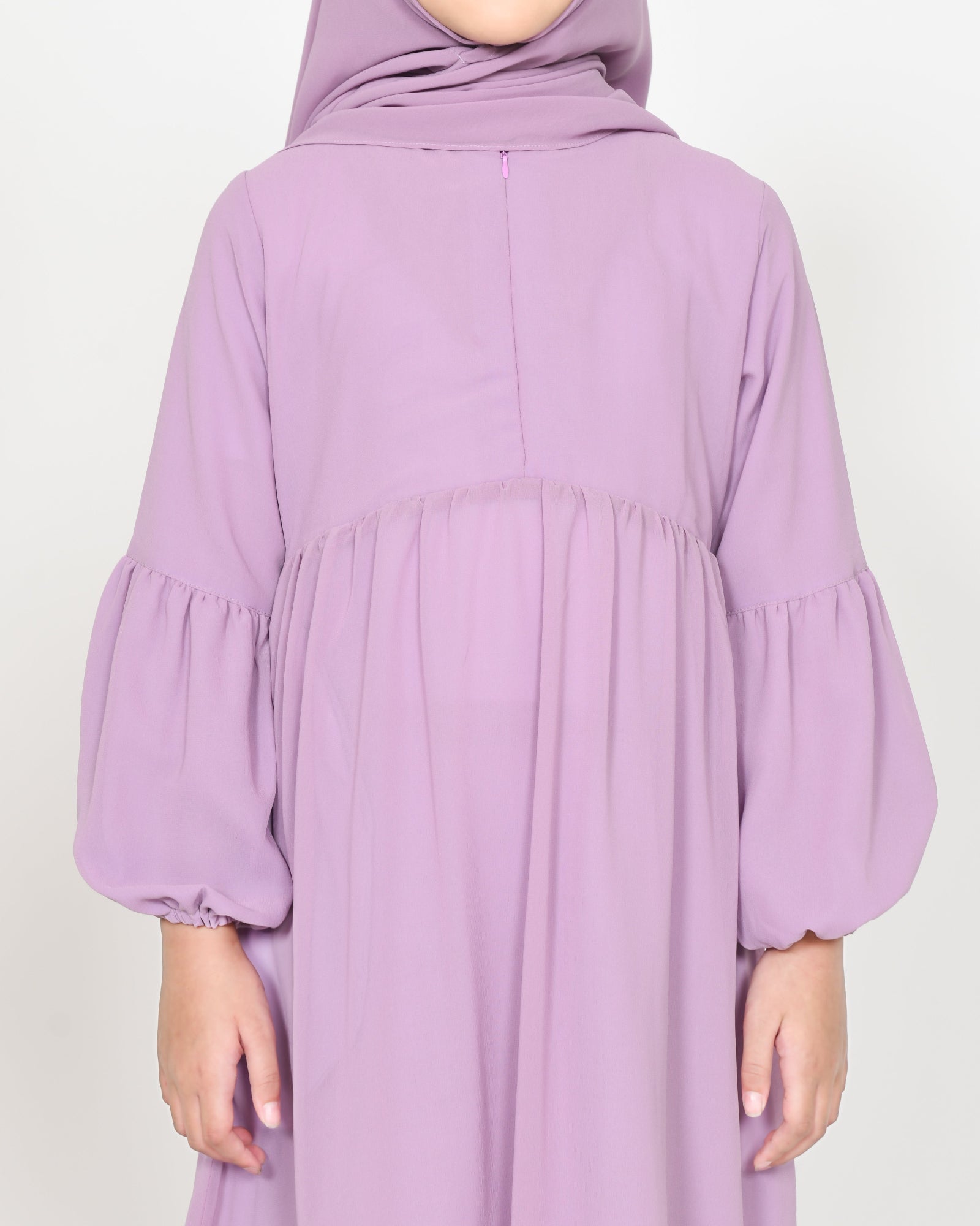 Abaya Noura is gemaakt van ceruti/ Chiffon met puring Katoen, een lichte en ademende stof die comfortabel aanvoelt en goed zweet absorbeert. Het ontwerp heeft elegante ballonmouwen met elastische manchetten, waardoor het een zachte en vrouwelijke uitstraling krijgt zonder in te leveren op bewegingsvrijheid. Aan de voorkant is een praktische rits verwerkt, zodat de abaya gemakkelijk te dragen is. De pasvorm valt soepel en stijlvol, perfect voor dagelijks gebruik of speciale momenten.