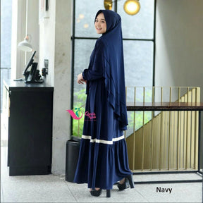 This super beautiful set consists of an abaya and a beautiful long khimar. The dress is made of premium quality jersey which is known for its airy properties, comfort and heat protection.