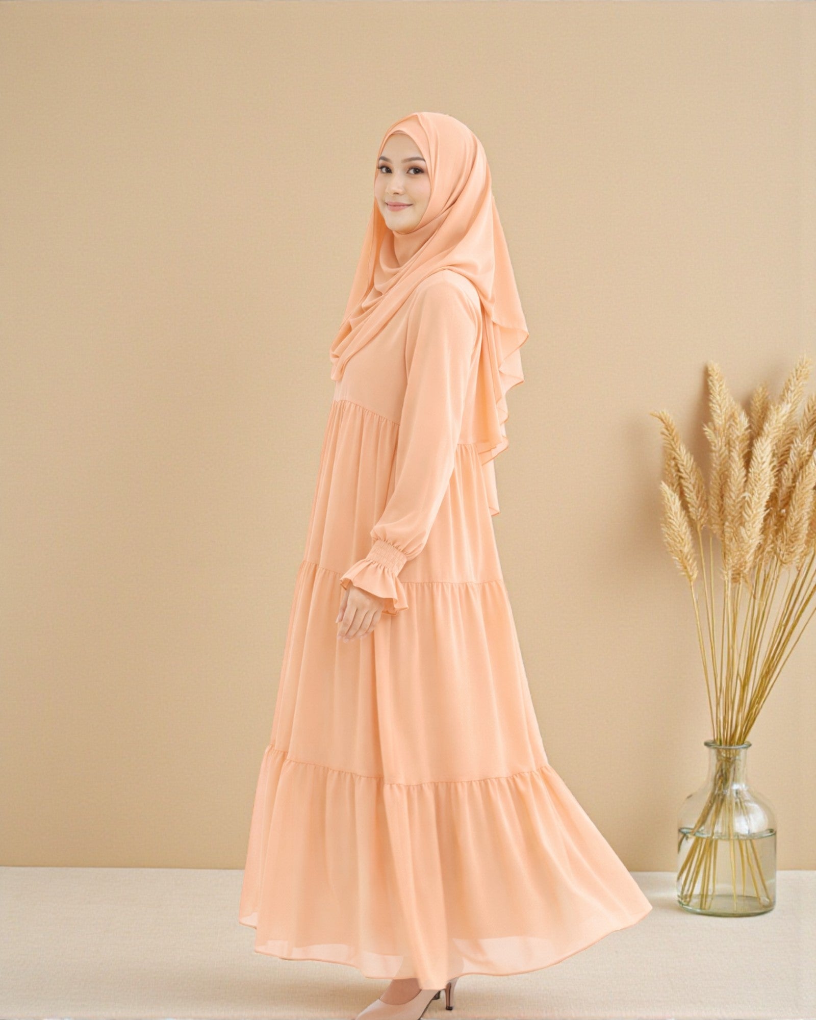 Een elegante abaya met een modern maar toch syar’i design. Gemaakt van premium ceruti met een zachte katoenen voering die comfortabel is om de hele dag te dragen en tegelijkertijd een luxe uitstraling geeft.