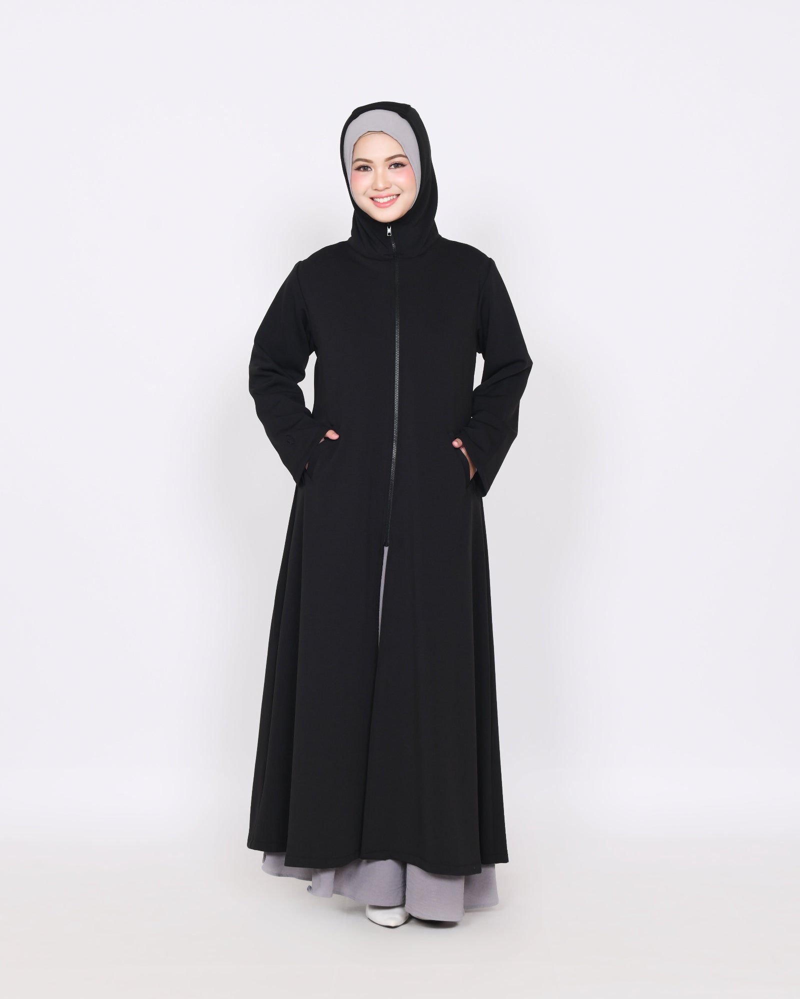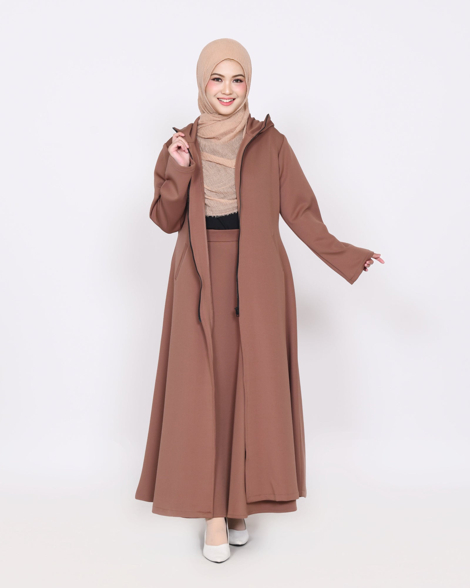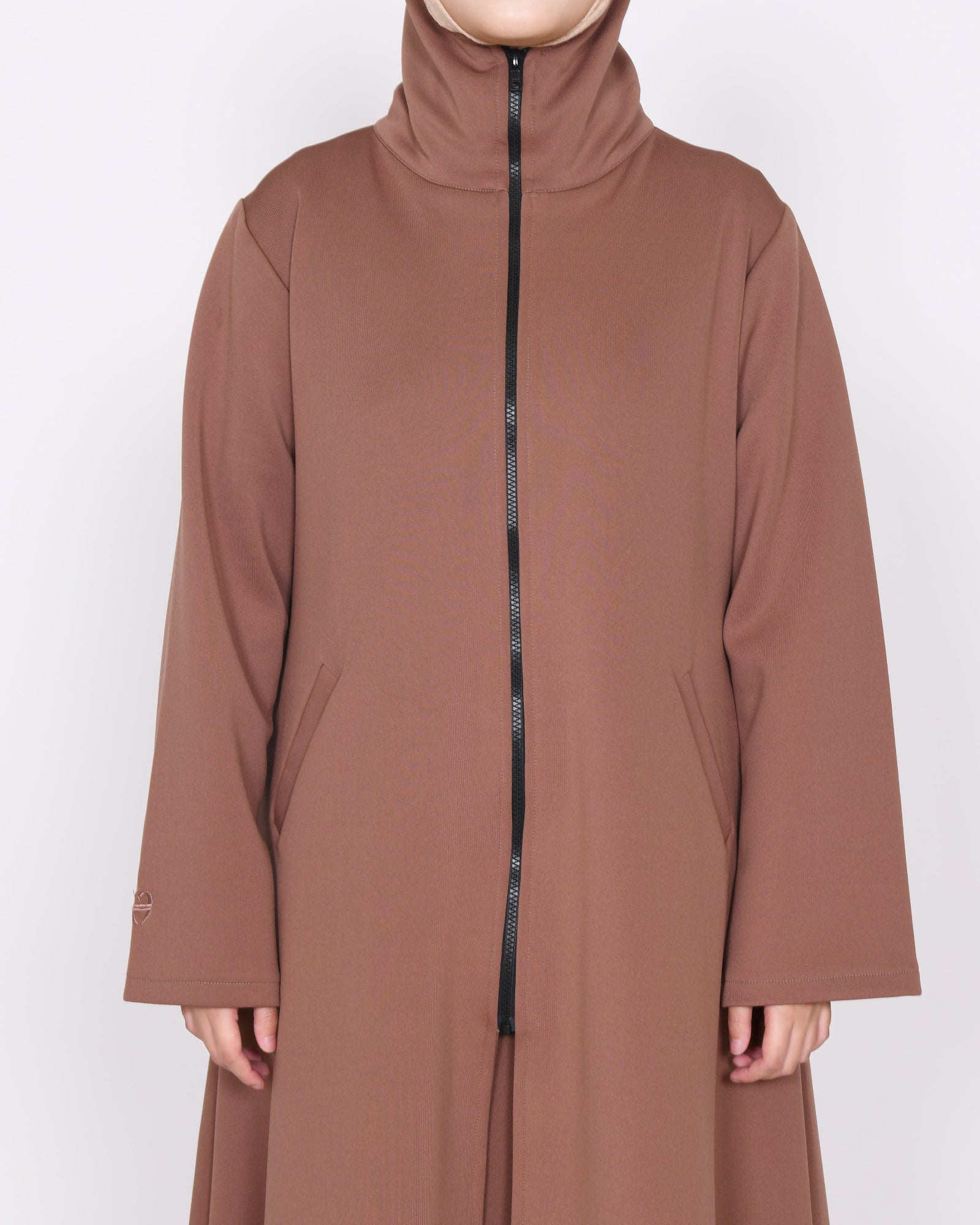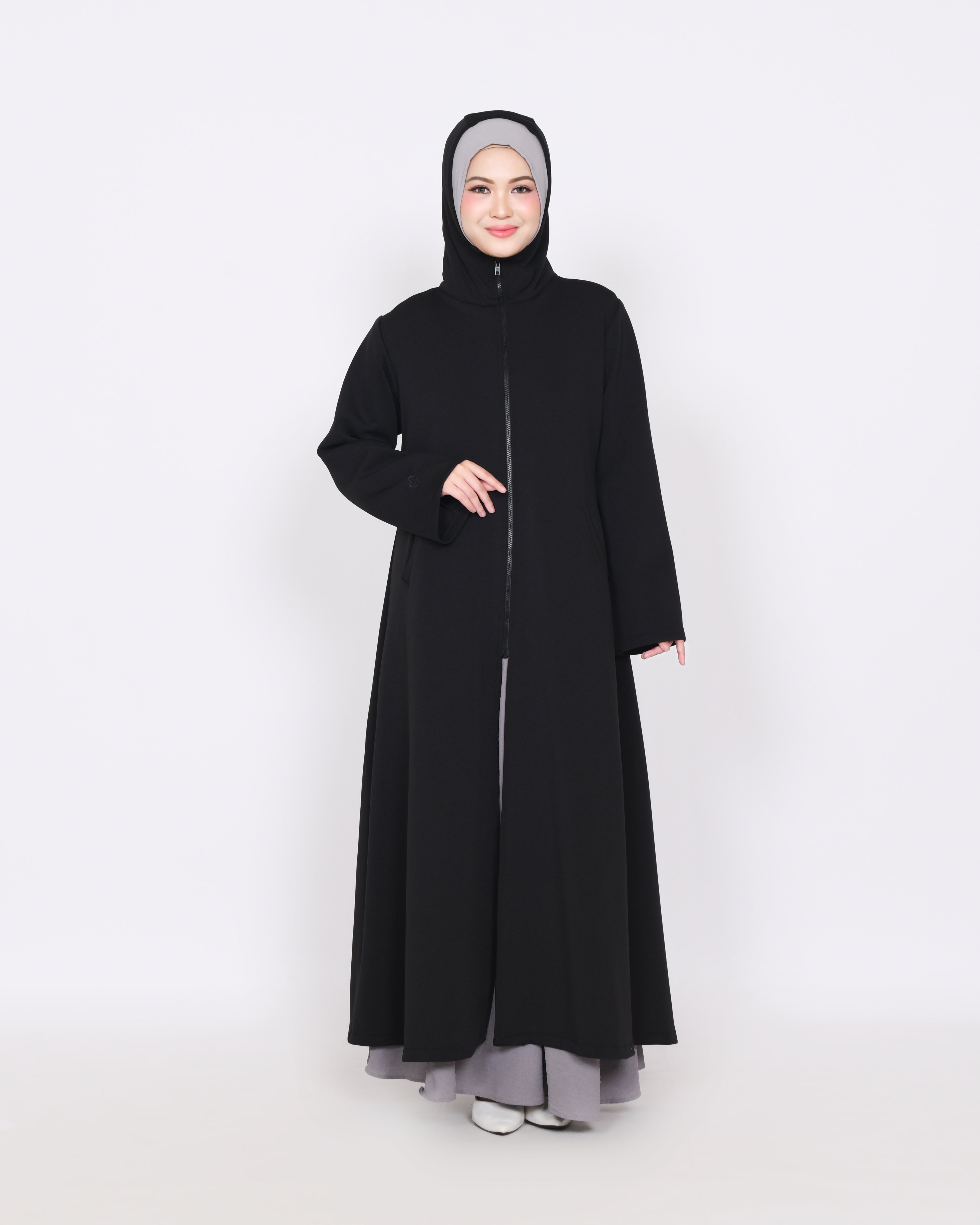 Outer Avelina – De perfecte keuze voor elke gelegenheid. Gemaakt van dikke, zachte scuba stof die ook rekbaar is, is deze outer voorzien van een elegante rits, een praktische capuchon en twee functionele zakken. Het kan perfect worden gecombineerd met de Avelina rok. De rits kan volledig worden gesloten tot aan de nek en onder de kin, voor extra bescherming en een modieuze uitstraling. Verkrijgbaar in drie mooie kleuren, ontworpen voor zowel comfort als stijl, zodat je er het hele dag geweldig uitziet en je geweldig voelt.