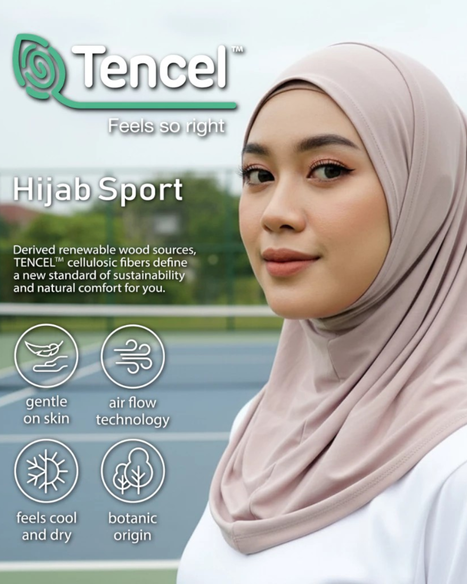De Khimar Sport Malay is gemaakt van TENCEL™ cellulosevezels uit hernieuwbare houten bronnen — een nieuwe standaard in duurzaamheid en natuurlijk comfort.
